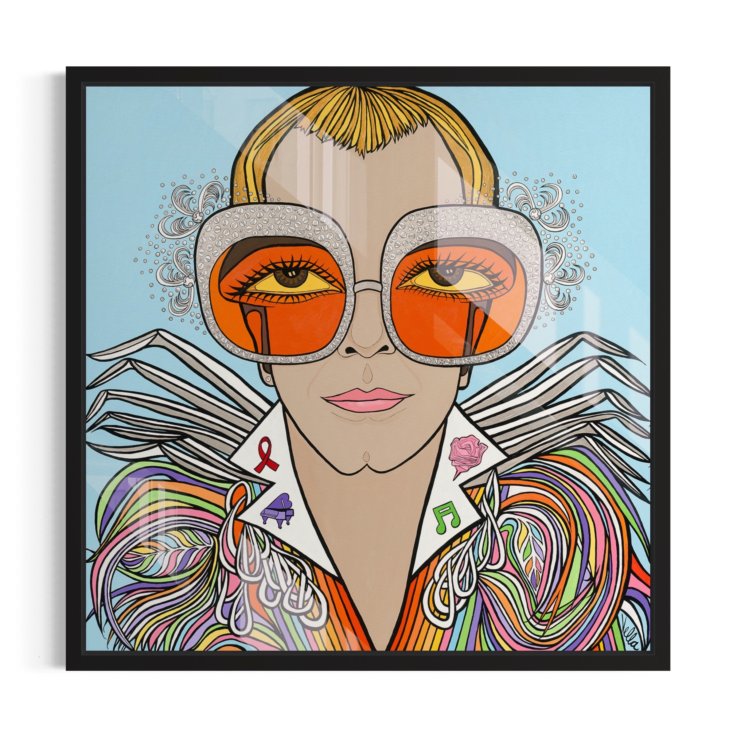 Elton John is a show piece in the waiting room or our niche therapy practice. People who visit our office report feeling happy when they look at this painting. Michelle Vella's art activates the core human emotions that ignite joy, hope, and determination, and I'm thankful to share this art with the many people who visit our office.
