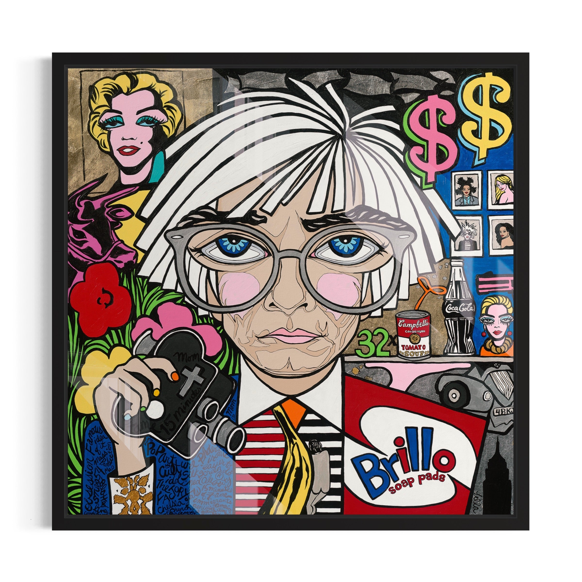The Comeback - Elvis Presley: "I've immersed myself in his world, watching documentaries that capture the essence of the man behind the legend. One that particularly stood out is "Reinventing Elvis: The '68 Comeback" on Paramount. This film offers a rare, intimate look at Elvis during the making of The Comeback Special, revealing his kindness, humor, and undeniable charisma. It also shows his vulnerabilities and the genuine joy he experienced during this pivotal moment in his career. Elvis was on fire, and the iconic scene with his silhouettes in the background inspired me to capture that magical, electrifying atmosphere in this painting. In preparing for my paintings, I create a digital mockup and combine several photos to get that look I have in my mind and in this portrait I had to include his famous TCB (The Come Back) sunglasses to highlight his eyes in my big eyes style. I'm so proud of how this portrait turned out and hope it brings a smile." ~ Michelle Vella