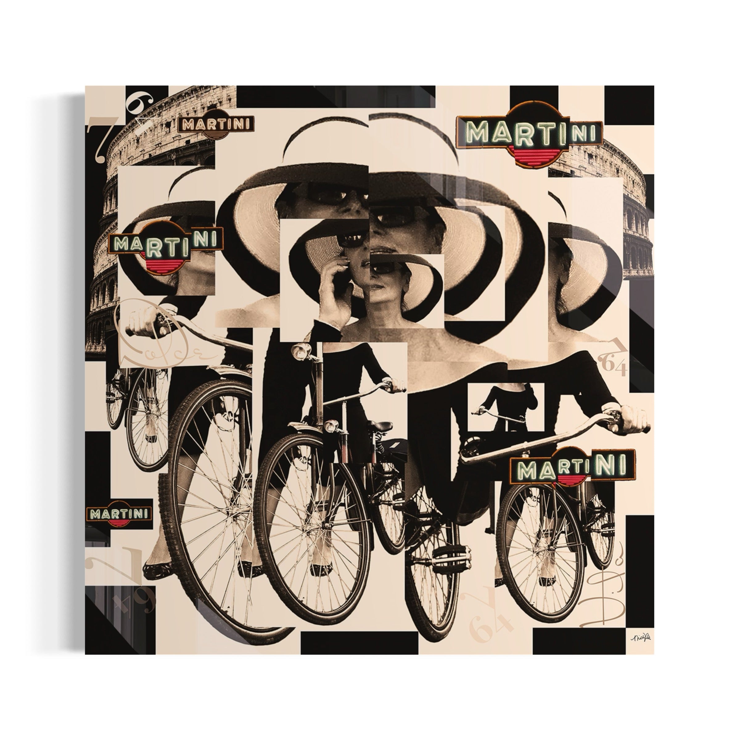 I wanted to take you on a little trip down memory lane—back to my early days as an artist, when I was exploring photo collages. One moment in particular shaped an entire series, and it all began with a photo I took in 2003. I was wandering across a bridge in Amsterdam, camera in hand, when I spotted her: a woman stepping off a vintage bike, looking like she walked straight out of a 1950s movie set. She had that Audrey Hepburn grace, wearing a chic wide-brimmed hat and an elegant black dress. The only thing betraying the year 2003? The flip phone she stopped to answer! I was at the right place at the right time and captured this stunning moment—a photograph that inspired my Martini Series.